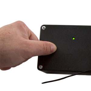 3. Press the small button next to the light to put the receiver into programming mode. This will cause the receiver light to turn green.