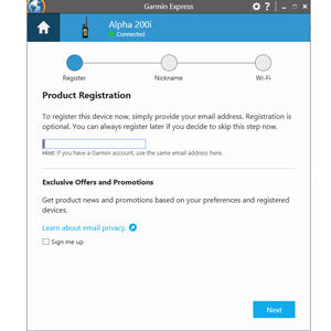 6. If you have not already done so, Garmin Express will then prompt you through the registration process step by step.