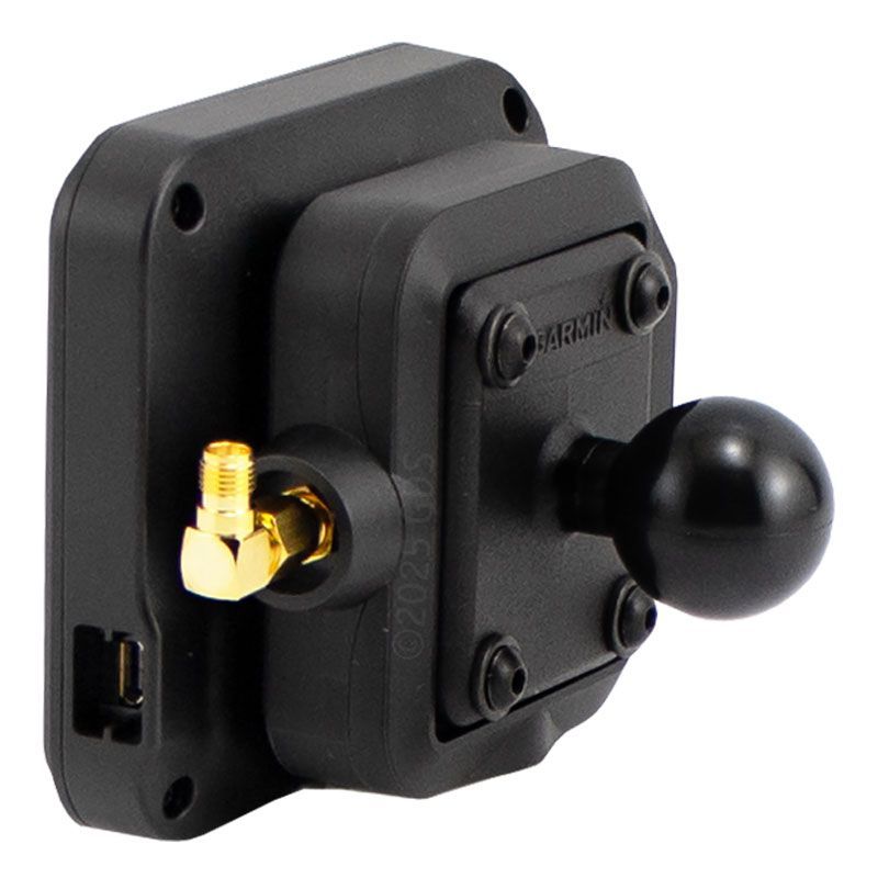 The Garmin Magnetic VHF Dock for your Alpha XL navigator includes a powered VHF mount, 1" ball mount and base plate, four screws, four washers, and a 90-degree antenna adapter.