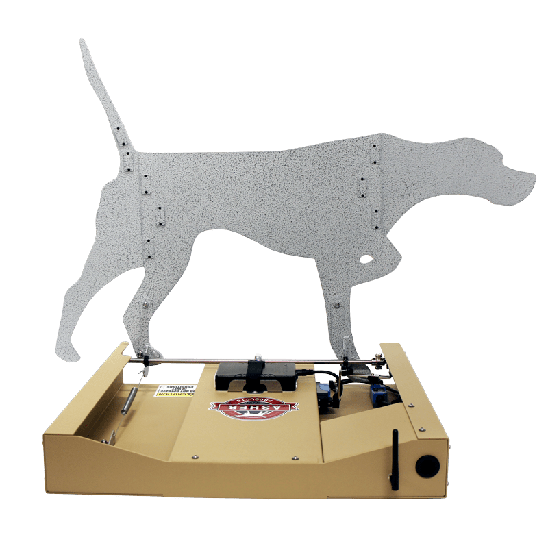 The Remote Backing Dog is designed to help create a situation where you can surprise your dog by presenting a visual of another dog that's on point. The Auto Backing Dog lays flat and out of sight until you press a button on the remote causing it to pop up, presenting a pointing dog.