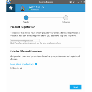6. If you have not already done so, Garmin Express will then prompt you through the registration process step by step.