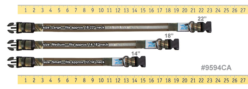 MAX-7 CAMO Avery Lighted Quick Release Dog CollarHow to Measure Your Dog's Neck | This collar can't accommodate an ID plate.Sorry, this collar can't accommodate an ID plate. 1" wide adjustable nylon dog collar with black plastic dual-action spring snap quick-release buckle. Ultra bright LED light strip has 7 different color options and 3 modes: solid, flashing, and strobe. COLLAR SIZING MADE EASYThese are NECK SIZE COLLARS which means the dog's measured neck size IS the collar size.Measure Your Dog's Neck to ensure a proper fit.