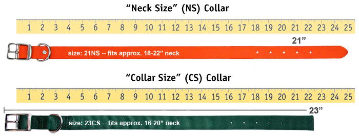 - Most of the collars we sell are "Neck Sized" or "NS" collars. NS collar sizes are determined by measuring from the center of the buckle to one of the adjustment holes. When you measure your dog's neck for an NS collar, that measurement IS the collar size you need.