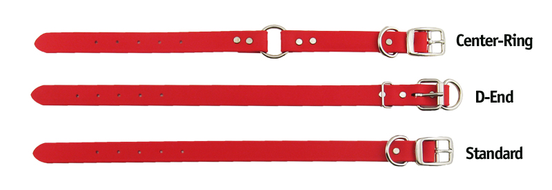 There are four main styles of collars that we offer: Standard, Center-Ring / O-Ring, D-End, and Adjustable Quick-Release.