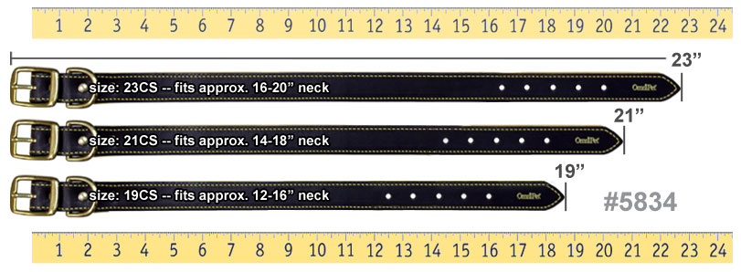 Great collar, sturdy, yet soft leather. The 3/4 inch width is perfect for smaller lab. She fell right in-between collar lengths. Ordered bigger, so we have room for growing.