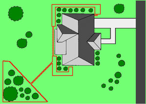 Twisted wire is used for the run from the transmitter (in Garage) to the perimeter. Using 2 pieces of single strand boundary wire twisted together produces no boundary. We recommend you twist this wire using an electric drill or something similar. You want approximately 1 twist per inch. Remember as it twists it will draw up, so allow plenty of extra. This type of installation gives the dog access to the house. Caution: You should avoid placing the wire close to metallic objects such as chain link fences. We recommend you lay the wire out and test the system with the collar prior to burial. You should also check to see if the collar is activate near the fence in other parts of the yard. If this is the case move your boundary wire further away from the fence. Take care to not create a gap between the fields. We also recommend that you block the area around the gate and not just the opening. Flower Bed Protection