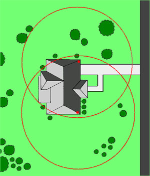 Twisted wire is used for the run from the transmitter (in Garage) to each bed. Using 2 pieces of single strand boundary wire twisted together produces no boundary. We recommend you twist this wire using an electric drill or something similar. You want approximately 1 twist per inch. Remember as it twists it will draw up, so allow plenty of extra. This type of installation gives the dog access to the house. Caution: You should avoid placing the wire too close the exterior walls of your home. The field can pass through the wall and your dog could receive a stimulation indoors. We recommend you lay the wire out and test the system with the collar prior to burial. You should also check to see if the collar is activated near interior walls. If this is the case move your boundary wire further away from the wall. Take care to not create a gap between the fields. We also recommend that you block the area around the gate and not just the opening. Combination Installation