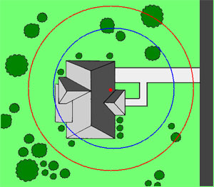 Twisted wire is used for the run from the transmitter (in Garage) to the perimeter. Using 2 pieces of single strand boundary wire twisted together produces no boundary. We recommend you twist this wire using an electric drill or something similar. You want approximately 1 twist per inch. Remember as it twists it will draw up, so allow plenty of extra. We recommend this type of installation for most yards. Double Loop Installation -- Back Yard with Pool or Shed