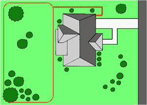 This type of boundary set up is a variation of the Double Loop Installation. This variation is used to block the dog's access to a particular area in your yard such as flower beds or your garden. This type of installation can be used with existing fencing as well as other containment installations. Use Double Strand wire to connect the smaller inner loop to the boundary. The boundary wire can be buried in front or inside the beds.