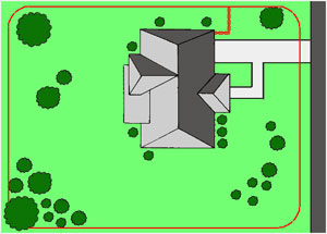 This type of boundary set up is probably the easiest and most common installation. The entire lot including your home is enclosed in the loop.