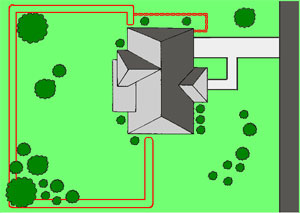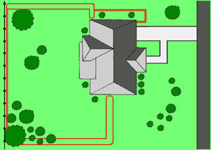 This type of boundary set up is probably the easiest and most common installation. The entire lot including your home is enclosed in the loop.