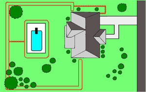 This type of boundary set up is a variation of the Double Loop Installation. This variation is used to define a containment area as well as deny your dog access to smaller areas, like a pool or tool shed, within the yard. Use Double Strand wire to connect the smaller inner loop to the boundary.