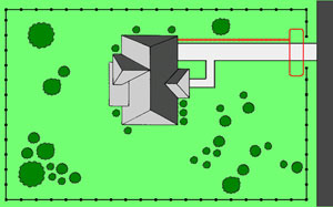 This type of boundary set up produces a double wide field and can be fit to most yards. The double loop is used to define 3 sides of the containment area and the house is used to define the fourth boundary. The 2 wires should be separated by 3-8 feet depending on your field width settings.