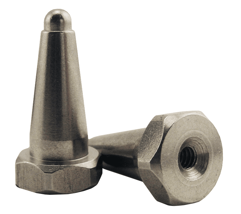Product picture shows all stainless, but the hex area is black rubber-like stuff. Doesn't matter that I can tell. The 1 inch contacts were VERY long once I installed them and looked at them. I returned them in exchange for 3/4 inch, which turned out to be just what I wanted. Very easy exchange.