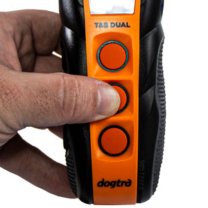 If you are configuring a 2-dog system, for Dog 2 repeat the entire Collar Setup process and press the top two buttons on the transmitter you previously configured for Dog 2.