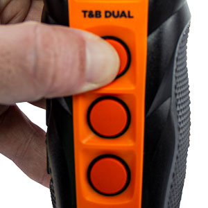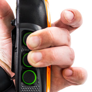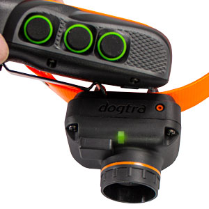 3. For Dog 1, simultaneously press the top two buttons on the transmitter you previously configured for Dog 1. When pairing is complete, the LED light on the receiver flashes every 4 seconds.