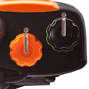 3. Select which buttons you wish to control each receiver: 1 (Dog 1 Front, Dog 2 Side) or 2 (Dog 1 Side, Dog 2 Front)