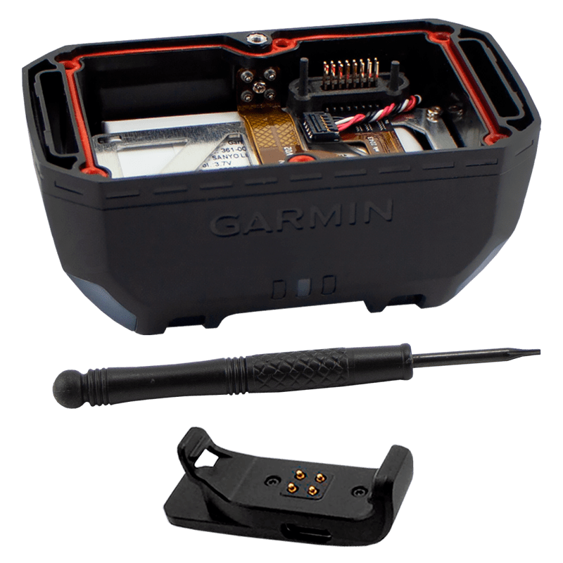 Extended-life user-replaceable Li-ion battery pack for Garmin TT25 and T20 GPS dog tracking collars. Up to 136-hour run-time using dynamic update rate.