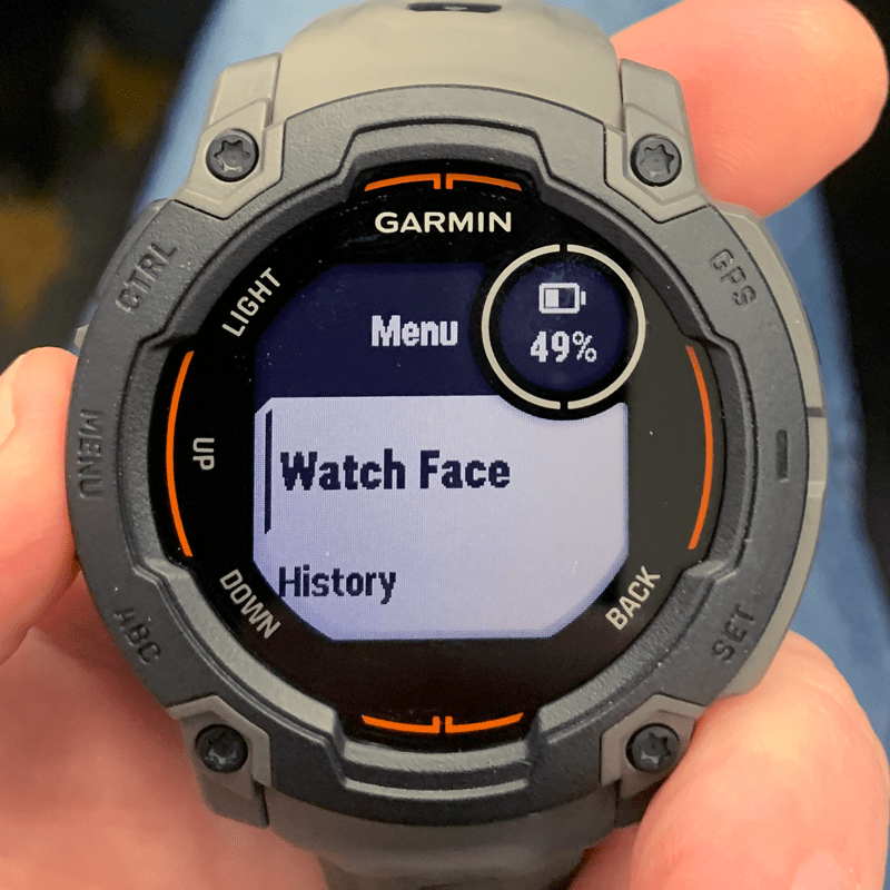 5. Hold down the MENU button on your Instinct watch.