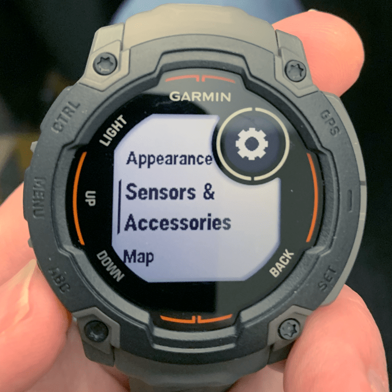6. Select "Sensors & Accessories" (press the top right side button for "Enter").