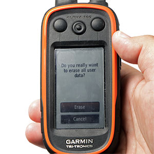 Performing a factory reset will erase all saved data on the system. User data (waypoints, routes, tracks, and dog collars in the Dog List) can be backed up to your computer by