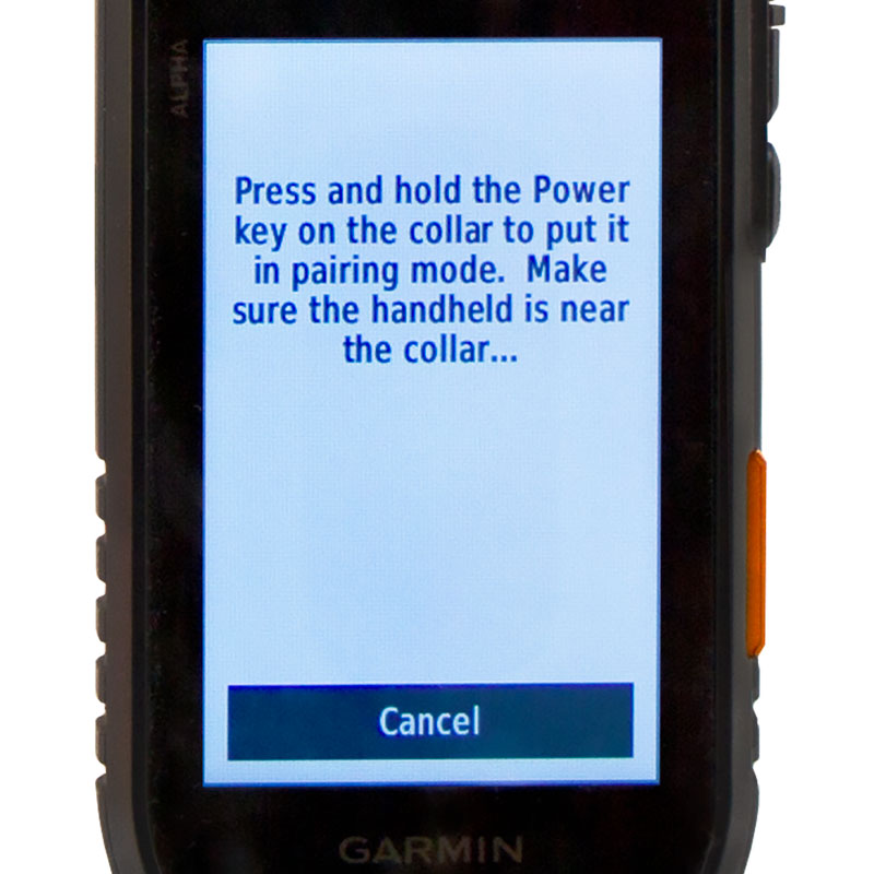 To pair wirelessly, the dog collar device must be within range of the Alpha handheld.