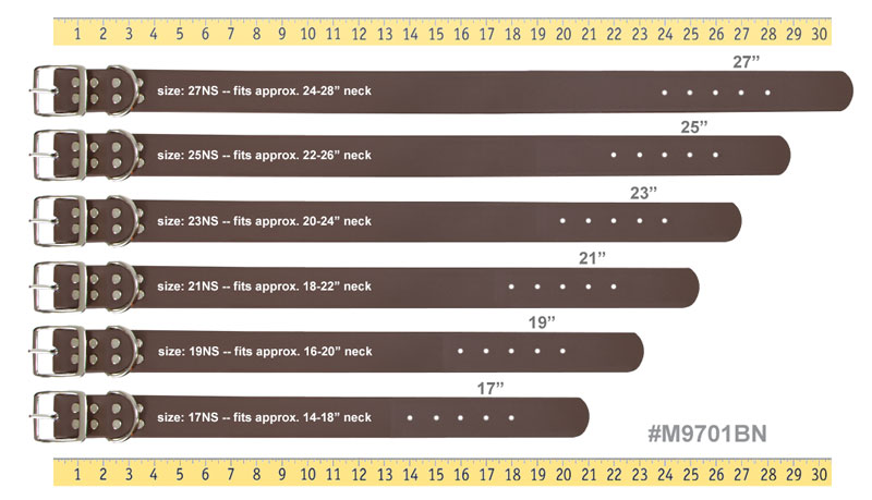 These are NECK SIZE COLLARS which means the dog's measured neck size IS the collar size.