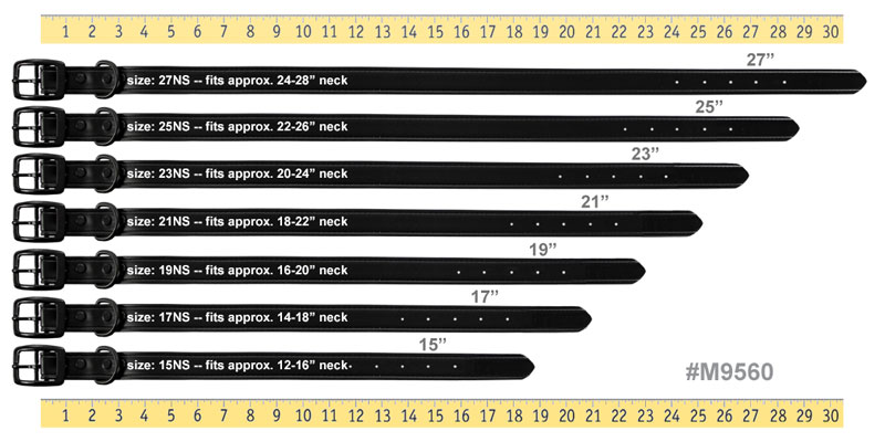 • The neck size (NS) represents the measurement from the center of the buckle to the fourth adjustment hole.