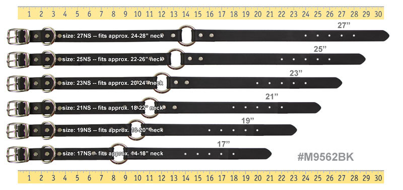 • The neck size (NS) represents the measurement from the center of the buckle to the fourth adjustment hole.