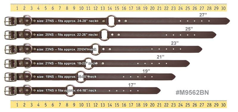 • The neck size (NS) represents the measurement from the center of the buckle to the fourth adjustment hole.