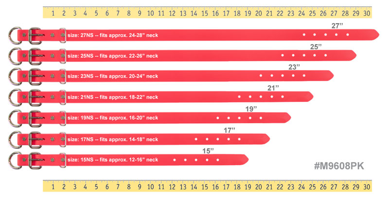 These are NECK SIZE COLLARS which means the dog's measured neck size IS the collar size.