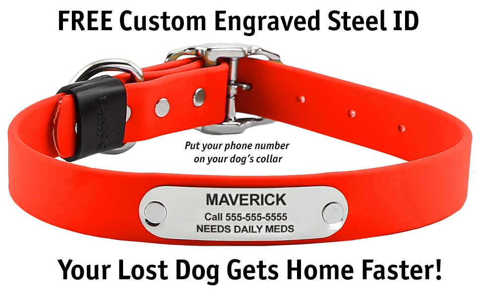 I always order this particular orange collar for my dogs. We always have either 1 or 2 rescued dogs and spend a lot of time travelling between two states as well as running around in the woods. A bright orange collar is a necessity and these Big Dawg collars are the most incredibly heavy-duty durable collars I've ever found. Not only are they made in the USA, but they don't fade, crack, stretch, get brittle, or stink. The collars get washed right on the dogs when they're bathed and I never have to even think about them. Friends of mine have said they're on the expensive side, but what's your dog's life worth? Would you prefer to spend 4x as much buying several collars over the dog's lifespan? With the addition of the brass ID plates, these are the perfect link between you and your dog. Pay attention to the good advice on the site about what information should be put on the plate, and order an additional plate for more info and phone numbers. They rivet on, never come loose, and are indestructible. BTW, one of my dogs can pull like a locomotive (he bent a German Sprenger large pinch collar apart he pulled so hard before training). This is the only collar that he can't break. It's light and simple, but very, very solid. Did I mention it was Made in the USA by Americans?