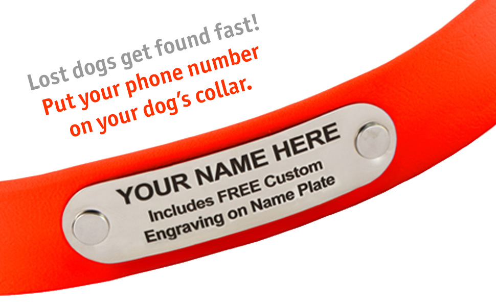 CA Residents: WARNING: Cancer and Reproductive Harm - P65Warnings.ca.gov. BRASS ID PLATE ONLY. Hunter Orange Big Dawg Collar | ||||||||