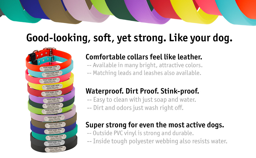 We have wasted so much money on collars and leashes and been unhappy with them. We are active and our dog gets wet, muddy, and dirty. Every collar we have had either ends up stinking or is so disgusting we throw away. This one, we leave on and it's not given us any problems. Love it! I would never buy another collar again. In fact, I've told all my friends they should switch to this!