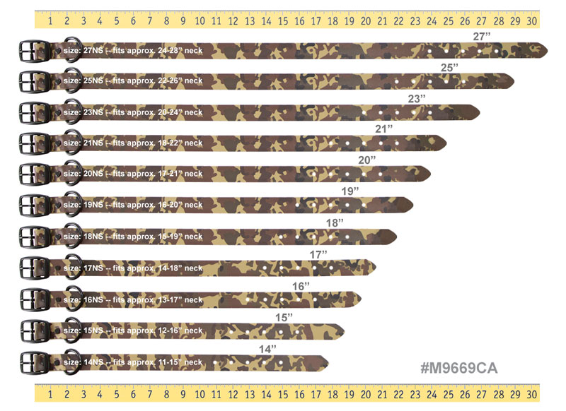 I sure wish you could give a simple inch length of these collars and not merely an "in-house " measuerment of "19NL" or whatever it is.Both of the collars I ordered are too short, though me neck meaasurement aligns with your system of sizing. A simple inch length would have prevented this.In five years when I get a puppy, I sure hope I can find these...and that I give the pup the same name.