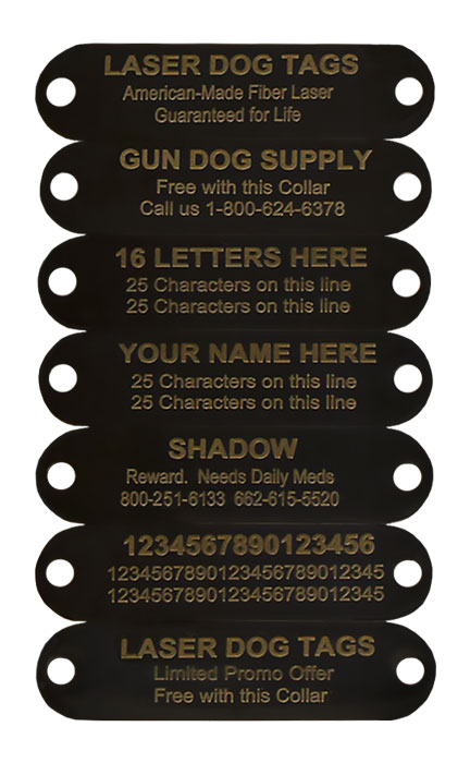 When you order this collar, you get a FREE 2.75" x .75" 3 line LASER black I.D. plate which we attach to your collar using rivets.