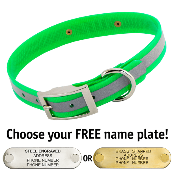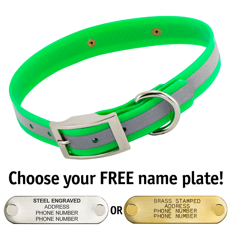 You are here:  > Dog Essentials > Dog Collars + Nameplates > Reflective Dog Collars > Item # 3953-GN