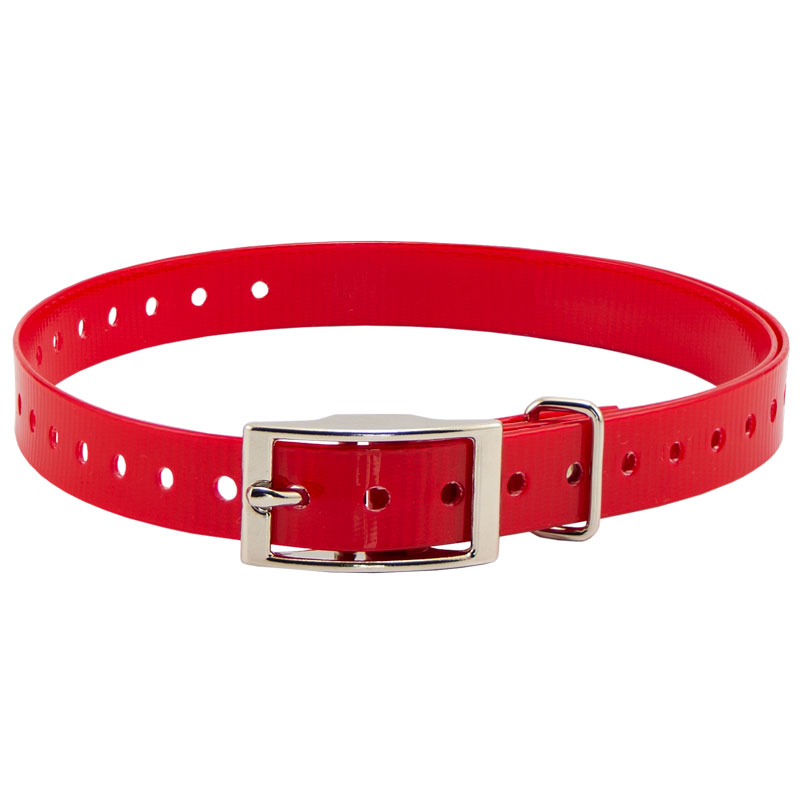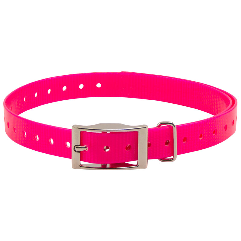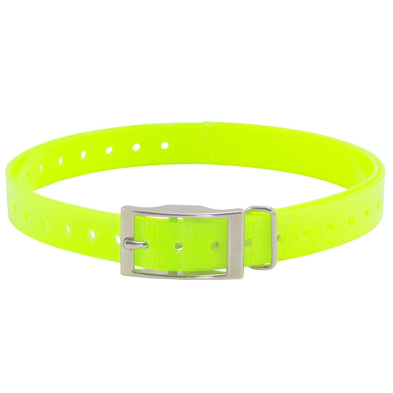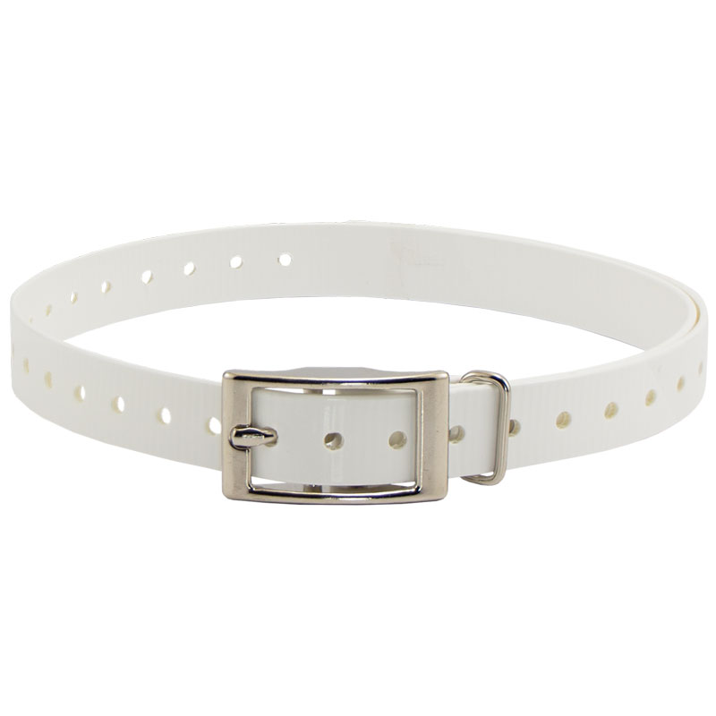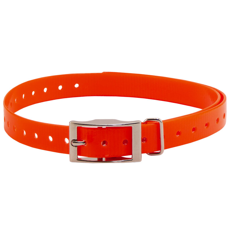 HiFlex 3/4 in. Universal Square Buckle Replacement Collar StrapsReplacement 3/4" square buckle e-collar straps for your dog training collar. Available in Black, Orange, Yellow, Red, Blue, White, Green, Khaki, Silver, Pink and Violet. Overall Length: 27" Actual neck sizes may vary depending on the way the collar mounts on your receiver. You will need to add 2-3" to your dog's neck measurement if the strap wraps around your receiver. Metal keeper on these collar straps not designed for attaching a leash.