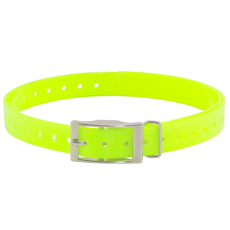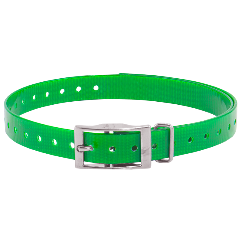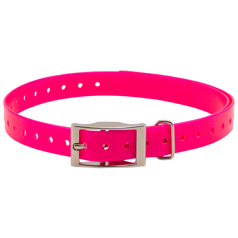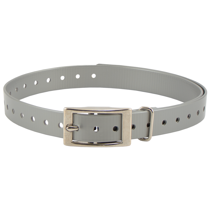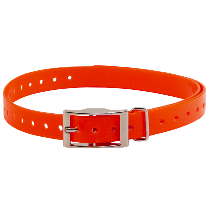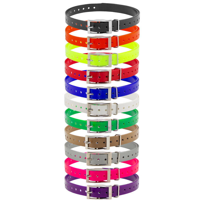 HiFlex 3/4 in. Universal Square Buckle Replacement Collar StrapsReplacement 3/4" square buckle e-collar straps for your dog training collar. Available in Black, Orange, Yellow, Red, Blue, White, Green, Khaki, Silver, Pink and Violet. Overall Length: 27" Actual neck sizes may vary depending on the way the collar mounts on your receiver. You will need to add 2-3" to your dog's neck measurement if the strap wraps around your receiver. Metal keeper on these collar straps not designed for attaching a leash.