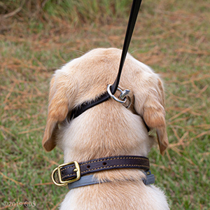 This configuration allows for the lead to tighten around the dog's neck if they pull. This technique is ideal for teaching your dog to heel.