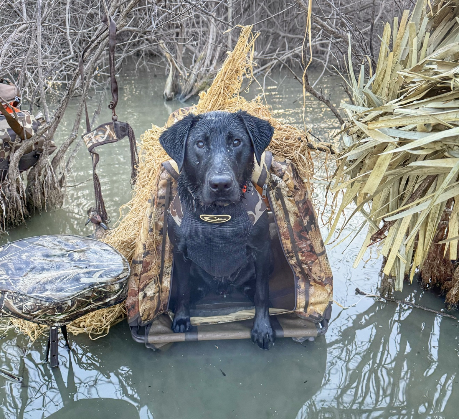 Perfect for our yellow lab who loves to duck hunt with our son. Keeps his beautiful blonde hair camouflaged and gives him a comfy spot to wait for a bird to drop.