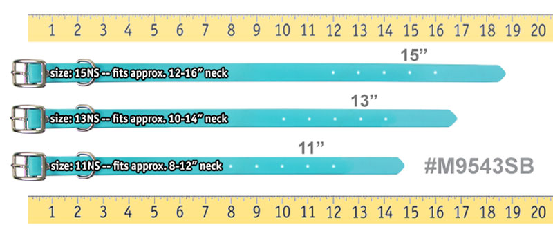 Little LASER Dawg -- SKY BLUE 3/4 in. Biothane Standard CollarHow to Measure Your Dog's Neck | FREE Brass Name Plate Information | See Matching Leashes COLLAR SIZING MADE EASYThese are NECK SIZE COLLARS which means the dog's measured neck size IS the collar size.Measure Your Dog's Neck to ensure a proper fit.