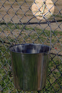 Buckets are a great way to provide fresh water for your dogs, and I use them in my kennel. If you want to keep your bucket off the ground for cleaning purposes or just to keep it from tipping over, a Double Snap is ideal for securing the bucket to your kennel fence. We have a variety of buckets including Standard, Flat Sided, and Flat Sided with Hooks, and the Double Snap is handy for all of them.