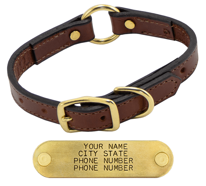 SOLID BRASS hardware which is pretty and strong. Brass not only looks good, but it's also good because it doesn't rust or turn. This collar hardware is made from solid brass, not a plated finish, so it won't wear off. Simply clean with BRASSO. The hardware matches the FREE BRASS ID NAME PLATE that comes with the collar.