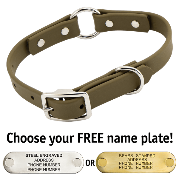 Little Dawg Biothane Collar Olive with Laser Nameplate