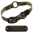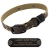 @@@@@@camo-leather-center-ring-collar-1in~~||~~9308~~||~~http://www.gundogsupply.com/camo-leather-center-ring-collar-1in.html~~||~~(30.99)~~||~~(25.99)~~||~~Usually ships the next business day.~~||~~COLLAR SIZING MADE EASY These are NECK SIZE COLLARS which means the dog's measured neck size IS the collar size. Measure Your Dog's Neck to ensure a proper fit. Use a measuring tape , cloth tape, or a piece of string (and measure the string). Measure your dog's neck where you want the collar to rest on the neck AND at the appropriate tightness. Once you have a measurement, refer to the Guide below to find the appropriate size. The neck size (NS) represents the measurement from the center of the buckle to the fourth adjustment hole. You can adjust approximately 1-inch longer or 2.5-inches shorter. Keep in mind that using the shorter adjustment holes will leave more collar strap extending past the buckle. Click for larger image. FREE ID Name Plate When you order this collar, you get your choice of a FREE 4-line laser-engraved stainless steel or machine-stamped brass 2.75" x .75" I.D. plate which we attach to your collar using rivets. Center Ring Collar ID Plate Placement Smallest Size Only:    (prevents tag from covering any holes) Center Ring Collar ID Plate Placement Larger Sizes: Enter your contact information in the blanks above. List multiple phone numbers Add name, city, state, and address if you have room Tags fit up to 4 lines of information. 20 characters on top line. 18 characters on the middle two lines (because of rivet placement). 20 characters on bottom line. NAME PLATES can use these characters: ABCDEFGHIJKLMNOPQRSTUVWXYZ 1234567890 / - . , ' & @ $ # ( ) : ! " _ * + = Here's more on what info to put on your dog's ID plates 1 inch width. WHY A LEATHER DOG COLLAR? Some dog trainers prefer leather collars when training their dogs because it won't pull on a dog's neck like nylon or other synthetic material when you're working with a dog. Leather has a different kind of friction. Leather doesn't spin on a dog the same as nylon. Doesn't tangle. Moves better on the dog's neck when cornering. The collar turns easier. Many dog owners like the look and feel of leather dog collars. Leather is one of the world's strongest materials and lasts a long time when taken care of properly. Leather is very durable. On the downside, you have to care for leather collars a little more, especially if you're working your dogs in water and the leather gets wet. You can clean a leather dog collar with a leather cleaner such as SADDLE SOAP. You also don't want a collar to dry out, so keep it clean and oiled with neatsfoot oil or another leather conditioner. If you have a dog with a light-colored coat like a yellow labrador retriever, don't put something on the collar that will stain the dog's neck! LEATHER COLLAR: BLACK HARDWARE This Omnipet Leather Dog Collar has both a center o-ring AND a D-ring. Multiple rings are great for training your dog because you have plenty of options to attach leads, leashes, checkcords, and other training tools. For example, if you have your dog on a stake-out chain hooked to the D-ring, you can hook your leash to the center ring w/o unhooking from the stake until you have control over your dog. Center-ring collars are safety collars, and if worn loose enough, a dog can roll out of a center-ring collar if it gets caught on a fence or hung up. Leather Collar Features: A must for the distinctive working dog Great looking and extremely durable Center "safety" ring relieves pressure when caught on an obstacle and is also a handy place to attach a lead Fully stitched design with black buckle, center ring, and dee ring Made in the USA~~||~~~~||~~1 in. Camo Leather Center-Ring Safety Dog Collar with Name Plate~~||~~