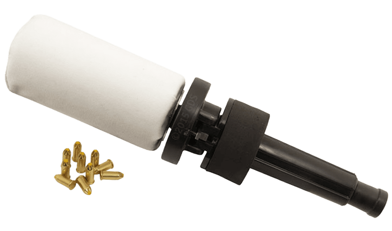 After each use, clean chamber with .22 cal. stainless steel cleaning brush. If this is not done, powder residue will build up and blank cartridge removal and insertion will become difficult. Use a drop of oil on the "O-Ring" to lubricate.