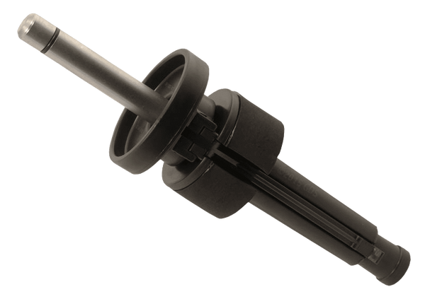 Slide dummy completely on to steel nose piece. Lift up locking lever to open launcher and insert desired power blank cartridge into chamber. Close launcher and return locking lever to original closed position. Rotate launcher so slot in recoil pad is facing away from you. PLACE HEEL OF HAND AGAINST RECOIL PAD.