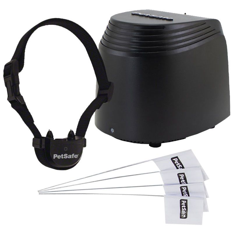 The PetSafe Stay and Play Rechargeable Wireless Pet Fence lets you adjust the size of the circular containment boundary for your dog -- up to 3/4 of an acre! The waterproof receiver collar is safe for dogs weighing 5 pounds and up, and fits neck sizes from 6" - 28". Choose between tone-only mode and five levels of static correction.