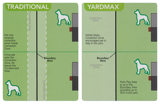In YardMax Mode, if your dog crosses the boundary, he receives a safe but startling static correction.